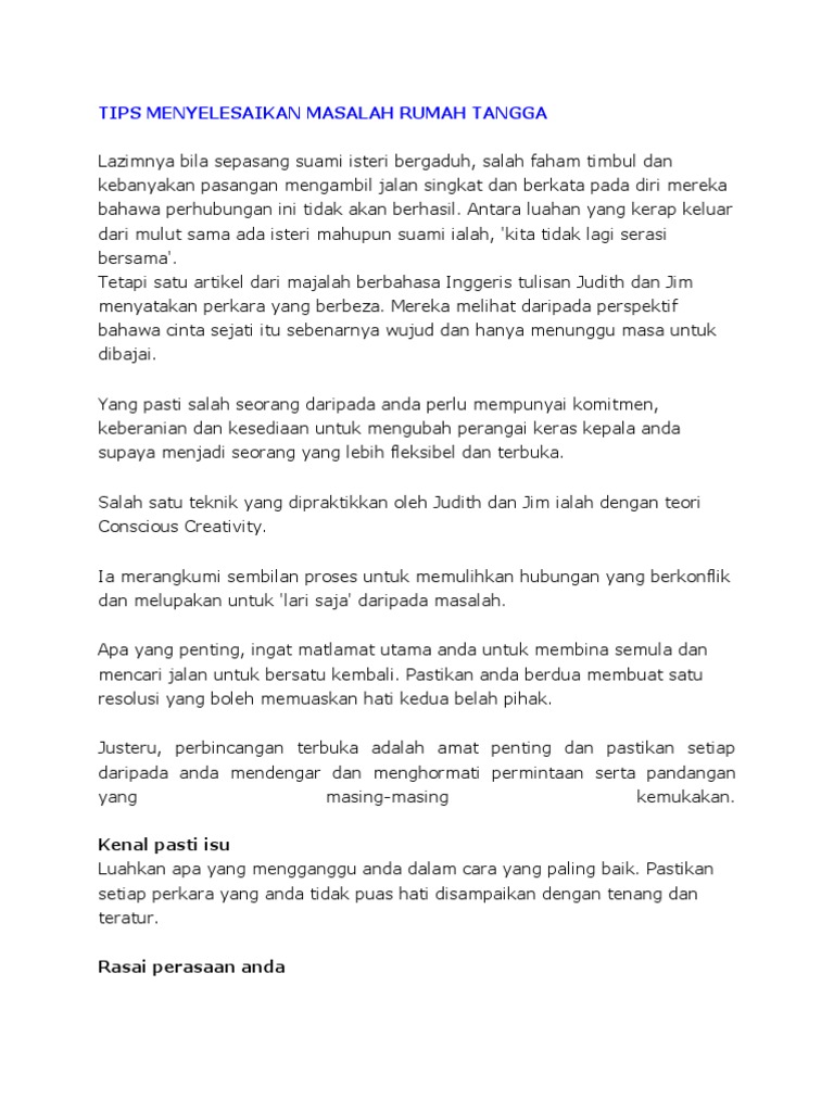 . Berikut ini merupakan beberapa prinsip menyelesaikan masalah yang salah dalam rumah tangga. Cara terakhir adalah bersikap jujur. Masalah ekonomi kerap menjadi salah satu pemicu terjadinya konflik rumah tangga antara pasangan suami istri.
